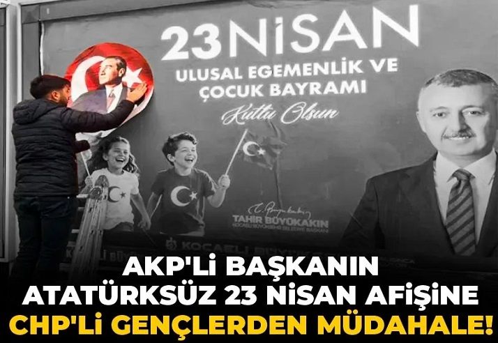AKP'li Kocaeli Büyükşehir Belediyesi tarafından 23 Nisan için hazırlanan afişler kamuoyunda tepki topladı. Belediye Başkanı Tahir Büyükakın, 23 Nisan afişlerinde Atatürk’e yer vermedi. Bunun üzerine CHP Derince Gençlik Kolları üyeleri, billboardlardaki afişlerin üzerine Atatürk görselleri yerleştirdi.