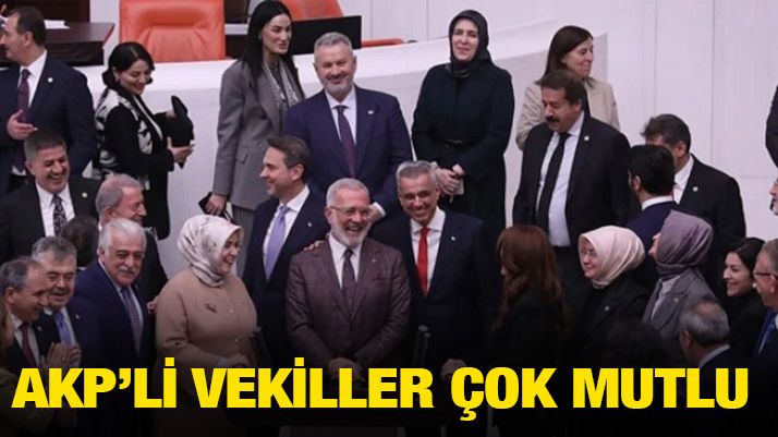 Görüşmelerin ardından AKP’li vekillerin bir kısmı bakanları kutlamak için sıraya girerken, bazıları hatıra fotoğrafının en iyi yeri için kürsünün etrafında yer tuttu.