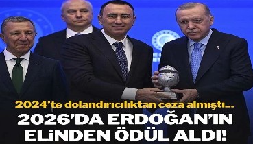 Dolandırıcılıktan ceza alan patron Erdoğan'ın elinden ödül aldı