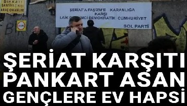 Şeriat karşıtı pankart asan gençlere ev hapsi