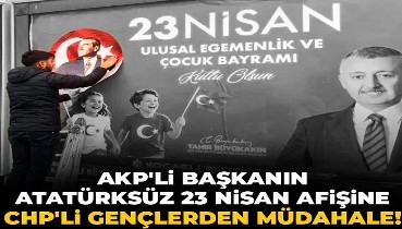 AKP'li başkanın Atatürksüz 23 Nisan afişine CHP'li gençlerden müdahale!10 izlenme