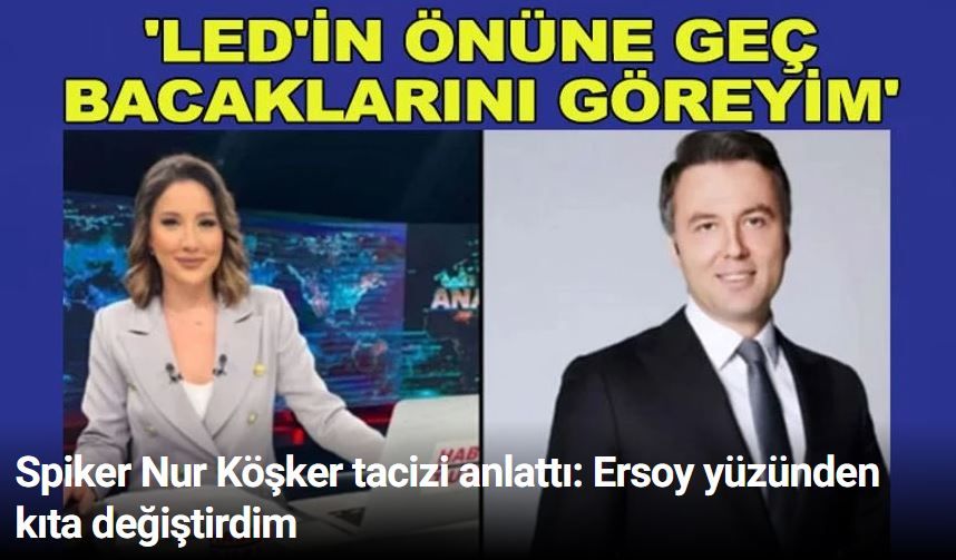 Uzun süredir devam eden bir taciz süreci vardı. Genel yayın yönetmeliğine getirilir getirilmez de ekrandan almakla tehdit etmeye başladı. En sonunda da ya bu iş böyle olur ya da oturur masada haber yazarsın dediği için istifa edip kanaldan ayrıldım. O gün bana bu cümleyi kuracağını bilseydim kesinlikle o odaya telefonum ses kaydını başlatarak girerdim.