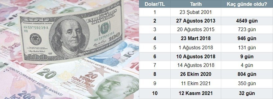 Dolar/TL, 27 ağustos 2013'te 2 TL'yi gördü. Doların 1 TL'den 2 TL'ye yükselişi 4549 gün aldı.