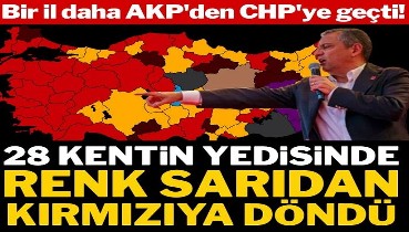 Bir il daha AKP'den CHP'ye geçti! 28 kentin yedisinde renk sarıdan kırmızıya döndü