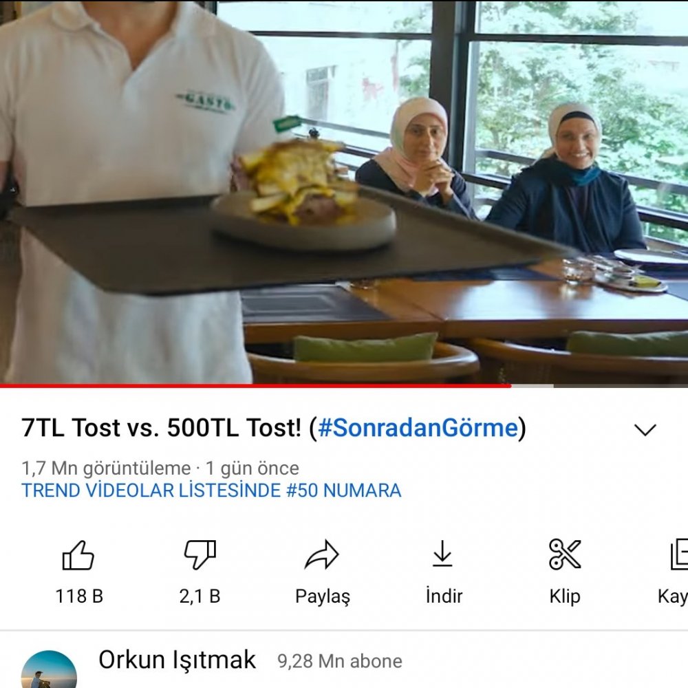Videoda 5 liralık tost için boğaz vapuruna binen Orkun Işıtmak, 500 liralık bir tost için ise lüks bir mekana gidiyor.