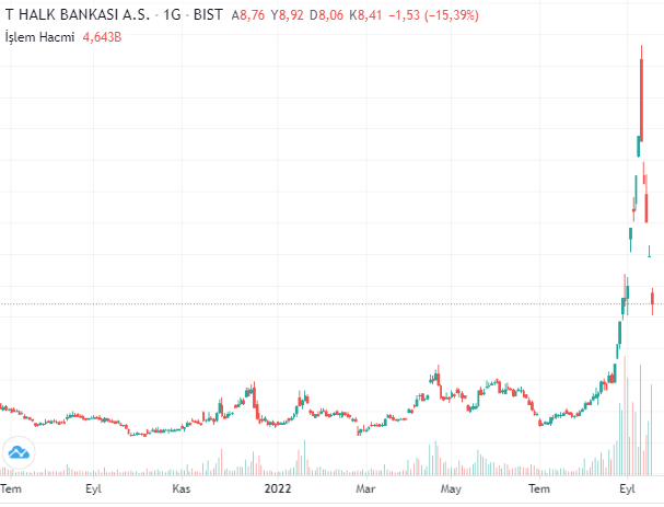 Halkbank'ın hisseleri; son bir yılda yaklaşık 4 TL seviyelerinde işlem görürken eylül ayında 15 TL seviyelerine kadar kaydedilen yükseliş dikkatleri üzerine toplamıştı. Hisselerin tekrar 4 TL seviyelerine kadar düşmesi ve bugün 8 TL seviyelerine kadar yükselmesinin ardından Halkbank'ın attığı bu adım tartışma konusu oldu ve manipülasyon iddialarını gündeme getirdi.