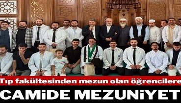 Tıp fakültesinden mezun olan öğrencilere camide mezuniyet10 izlenme