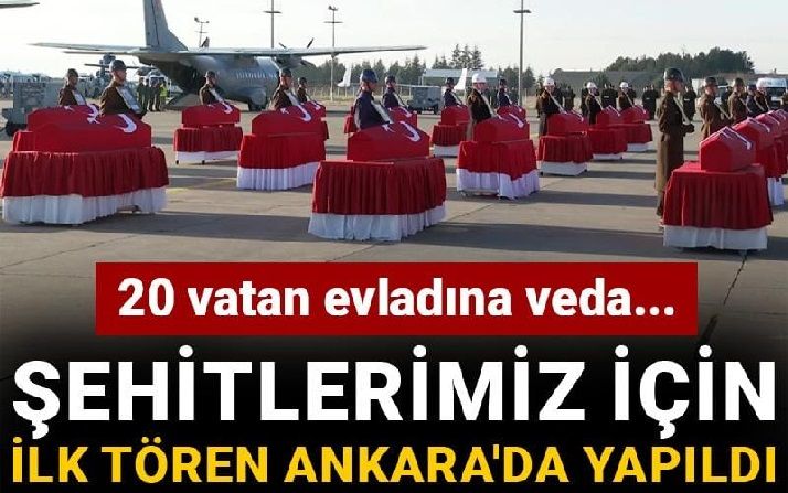 GürcistanAzerbaycan sınırında düşen uçakta 20 askerimiz şehit oldu. Şehitlerin aziz naaşları, Mürted Hava Meydanı'na getirildi. Memleketlerine uğurlanacak şehitler için, ilk tören burada yapıldı.