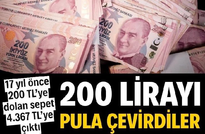Öte yandan liradaki kayıp vatandaşının sofrasını eritti. Temel gıda ürünlerinin fiyatları, 2009’dan 2026’a kadar katlanarak yükseldi. 2009’da 200 liraya satın alabildiğimiz bir ürün sepetini alabilmek için Merkez Bankası enflasyon hesaplayıcısına göre bugün 4.367 lira harcamamız gerekiyor. Örneğin 2009’da kilogramı 16 TL olan dana etinin fiyatı 2026’da 865 TL’ye, 4.43 TL olan tavuk etinin kilogram fiyatı 113 TL’ye, beyaz peynirin kilogram fiyatı 11 TL’den 339 TL’ye ulaştı. 200 lira tedavüle çıktığında benzinin litre fiyatı 2.72 lira iken, bugün 55.15 liraya ulaştı. 200 lira ile 2009’da 73.5 litre benzin alınabilirken, şimdi sadece 3.6 litre alabiliyoruz.