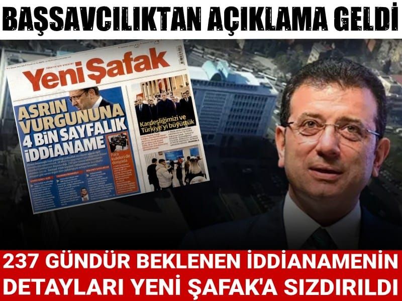 Daha mahkemeye sunulmadan ve kamuoyuna açıklanmadan İBB iddianamesinin detaylarının iktidara yakın Yeni Şafak'a sızdırılmasının ardından başsavcılık kaynakları "İBB iddianamesi olarak kamuoyunda bilinen iddianamemiz halen hazırlanma aşamasındadır, bittiğinde anında bilgilendirme yapılacaktır" açıklamasını yaptı.