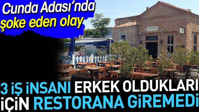 “Balıkesir ili Ayvalık ilçesi Cunda adasında bulunan.Cunda MOSHOS TAVERNA isimli mekana 19.6.2024 tarihinde akşam saatleri 21.40 da 3 arkadaşımız ile yemek yemek icin gittik. Kapıda duran yetkili müdür olduğunu söyleyen şahıs(bay) bizlere yerimiz var ancak kusura bakmayın 3 Erkek olarak alamayacağı bilgisini verdi. Bahsi geçen mekan restorana(alkollu lokanta) olup gece klubü dahi değildir. Kendilerine bu yaptıkları cinsiyetçiliğin yanlış olduğunu ilettim kendisi bana “haklısınız ama yine de almıyorum” şeklinde cevap verdi. Olayın hemen akabinde görev yapan zabıta memurlarına durumu anlattık kendilerini uyaracaklarını ancak cezai işlem uygulanmasının mümkün olmadığını tarafıma sözlü olarak söylediler. UMUMA AÇIK işletmelerde böyle bir tutuma müsaade edilmemelidir. Bizler vatandaş olarak böyle cinsiyetçi ve yasa(mevzuata) aykırı tutum sağlayan bu işletme çalışanı ya da yetkililerine cezai işlem uygulanmasını saygılarımızla arz ederiz. ÜLKEMİZDE böyle işletmeler ve işletme sahiplerine gerekenin yapılmasını istiyoruz.”