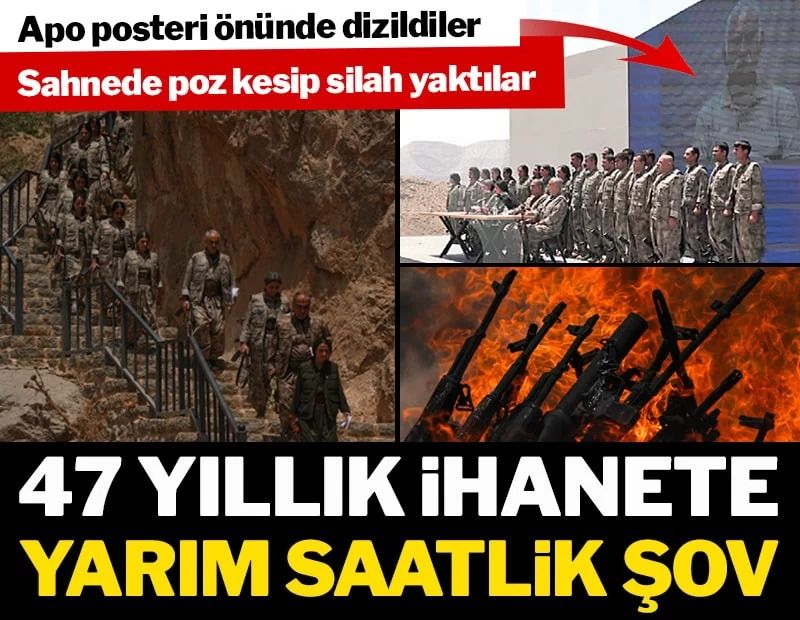 Öcalan’ın 27 Şubat’ta PKK’ya kendini feshetme ve silah bırakma çağrısının üzerinden 5 ay geçti. 57 Mayıs tarihlerinde kongre yaparak sözde silah bırakma kararı alan terör örgütü dün, sembolik olarak temiz giyimli, kadın ve erkeklerden oluşan 30 kişilik teröristle göstermelik bir silah bırakma töreni yaptı. Tören alanına DEM Parti milletvekilleri de gitti. Gazeteciler ise geçmiş yıllarda gazeteci kimlikli istihbarat görevlilerinin alana sızması nedeniyle güvenlik gerekçesiyle tören alanına alınmadı.