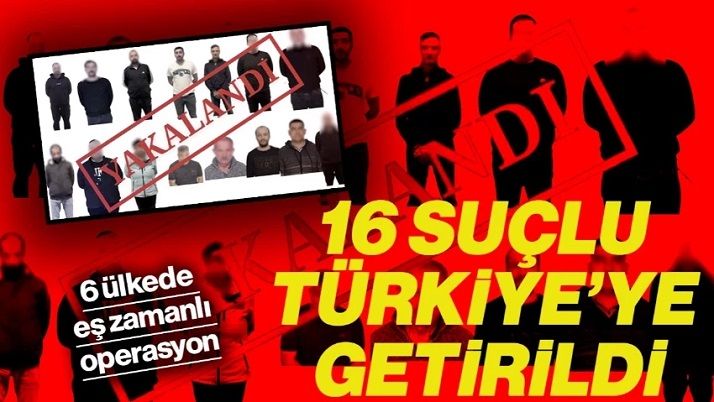 İçişleri Bakanı Ali Yerlikaya, sosyal medya üzerinden yaptığı açıklamada, kırmızı bültenle ve ulusal düzeyde aranan toplam 16 kişinin yurt dışında yakalanarak Türkiye’ye iade edildiğini açıkladı. Bakan Yerlikaya, operasyonların, uluslararası iş birliğiyle eş zamanlı yürütüldüğü belirtildi.