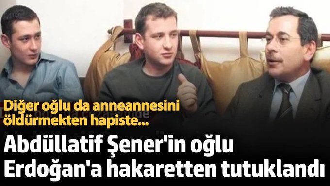 AKP'nin kurucularından Abdüllatif Şener'in oğlu Şamil Şener, Cumhurbaşkanı Erdoğan'a hakaretten tutuklandı. Şener'in diğer oğlu Bedirhan Şener de anneannesini öldürdüğü için tutuklanmıştı.