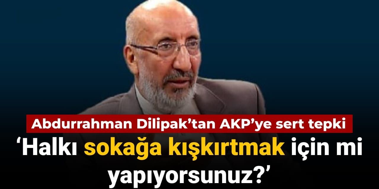 Eski Yeni Akit yazarı Abdurrahman Dilipak, iktidar tarafından açıklanan yeni Emlak Vergisi’ne isyan etti. “Fazla naz aşık usandırır” diyen Dilipak, “ağır” vergilere ilişkin Ankara’ya “halkı sokağa kışkırtmak için mi yapılıyor” sorusunu yöneltti.