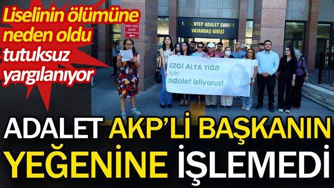 BirGün’den Zeliha Aslan’ın haberine göre; Gaziantep’te, 12 Nisan 2022’de arkadaşı Şimal Toprak ile scooter kullanan17 yaşındaki lise öğrencisi Ezgi Alya Yiğit, AKP’li Nizip Belediye Başkanı Mehmet Sarı’nın yeğeni olan ehliyetsiz sürücü 17 yaşındaki Osman Sarı’nın çarpması sonucu yaşamını yitirdi. Antep’in en işlek caddelerinden biri olan Cemil Sait Barlas Caddesi’nde gerçekleşen olayın dava sürecinde, olay yeri ve olay anına ilişkin kamera görüntülerine ulaşılamadığı ifade edildi. Sanık Sarı tutuksuz yargılanırken, Yiğit’in ailesi 16 Ekim’de görülecek dava öncesi adalet talebini yineledi.