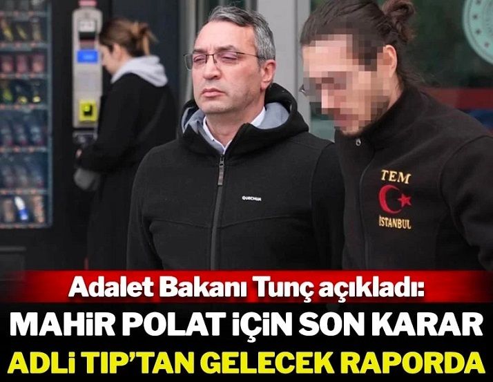 Adalet Bakanı Yılmaz Tunç, "İstanbul Cumhuriyet Başsavcılığınca yürütülen soruşturma kapsamında tutuklu bulunan İBB Genel Sekreter Yardımcısı Mahir Polat’ın sağlık durumuyla ilgili spekülatif bazı paylaşımlar ve iddialar gündeme getirilmektedir. 29 Mart 2025 tarihinde sağlık şikâyetleri üzerine önce kurum polikliniğinde ilk müdahalesi yapılan ve ardından Mehmet Akif Ersoy Göğüs Kalp ve Damar Cerrahisi Eğitim ve Araştırma Hastanesi’nde uzman hekimlerce gerekli tüm tetkik ve tedavileri eksiksiz şekilde gerçekleştirilen tutuklu Mahir Polat’ın sağlık durumu hekimler tarafından dikkatle takip edilmektedir. Bu süreçte, hekimlerin uygun bulması üzerine hastaneden taburcu edilen tutuklunun Marmara Kapalı Ceza İnfaz Kurumunda sağlık kontrolleri ve ilaçla tedavisi devam etmektedir." açıklamasını yaptı.