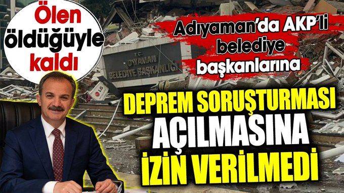 Adıyaman Cumhuriyet Başsavcılığı, Kahramanmaraş merkezli depremlerde yaşanan yıkım nedeniyle dönemin AKP’li Belediye Başkanı Süleyman Kılınç ve ilçe belediye başkanları hakkında ''soruşturma yapılmasına yer olmadığına” karar verdi.