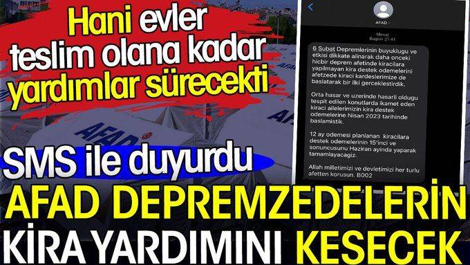 Ancak AFAD kira yardımı verdiği vatandaşlara SMS atarak bu ay yardımların son olacağını açıkladı. AFAD depremzedelere 5.000 TL kira yardımı yapıyordu.