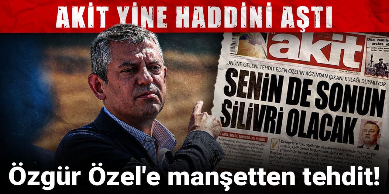 Yandaş çizgisiyle bilinen Yeni Akit gazetesi, bugünkü manşetinde Cumhuriyet Halk Partisi (CHP) Genel Başkanı Özgür Özel’i açıkça hedef aldı. Manşette “Senin de sonun Silivri olacak!” ifadesi yer alırken, üst başlıkta ise “Önüne geleni tehdit eden Özel’in ağzından çıkanı kulağı duymuyor” sözleri kullanıldı.