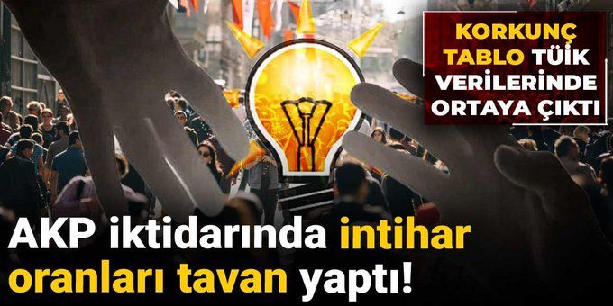 Türkiye’de ekonomik ve sosyal sorunların tırmanmasıyla birlikte özellikle genç intihar vakaları artış gösterdi. AKP iktidarında intihar oranları tavan yaparak tırmanışa geçti. Daha çok gençlerin intihar eğiliminde olduğu algısı olsa da, yapılan araştırma sonucunda nüfusun geneli için intihar vakalarının hızla artma eğiliminde olduğu ortaya kondu.
