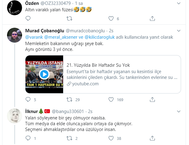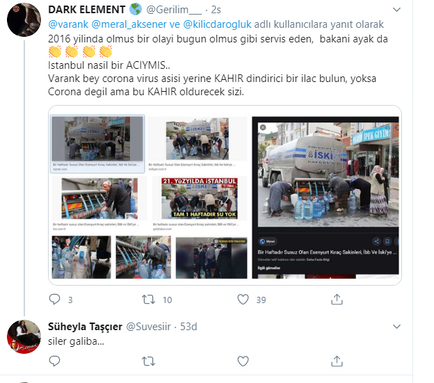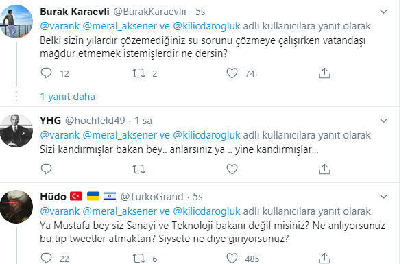 Çok sayıda yurttaş Bakan Varank'a tepki gösterdi. Su kesintilerinin AKP döneminde de yapıldığı vurgulandı. İBB yönetiminin AKP'li olduğu 201 2017 yılındaki "su kesintisi" ve "su kuyruğu" haberleri paylaşıldı.