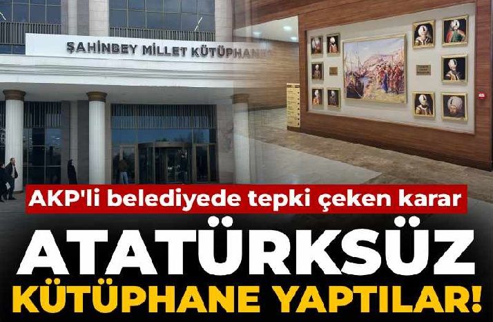 AKP'li Şahinbey Belediyesi tarafından geçtiğimiz yıl açılan kütüphanede, Osmanlı padişahlarının portreleri yer alırken, Cumhuriyet’in kurucusu Gazi Mustafa Kemal Atatürk’ün resminin bulunmaması tartışma yarattı. Yurttaşlar ve sosyal medya kullanıcıları, kütüphanede Atatürk’ün resminin olmamasını eleştirdi.