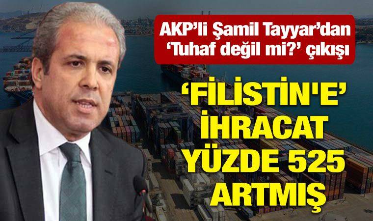 Erdoğan'a konu hakkında sağlıklı bilgilerin aktarılmadığını düşündüğünü söyleyen Tayyar, "Kıblesi olmayan kimi sermayenin Filistin kamuflajıyla İsrail’e mal satma ihtimali yüksek gözüküyor. Bakın, geçen yılın ilk 9 ayında Filistin’e toplam 91 milyon 276 bin dolar ihracat yapılırken, bu yılın aynı döneminde bu rakam 571 milyon 186 bin dolara çıkmış. İhracat artışı yüzde 525" dedi.
