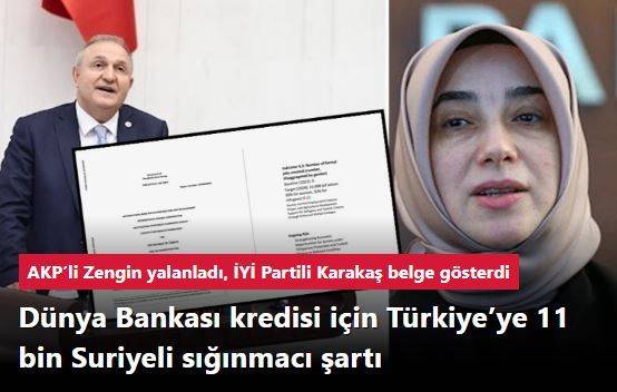 İYİ Parti Aydın Milletvekili Ömer Karakaş, Dünya Bankası'nın Türkiye'ye verdiği kredi anlaşmasında tarım alanında 2028 yılına kadar 11 bin Suriyeli sığınmacıya tarım alanında kadro verilmesi şartının da yer aldığını açıkladı. AKP Grup Başkanvekili Özlem Zengin konuyu Tarım Bakanı'na sorduğunu ve bunun gerçeği yansıtmadığını söyledi. Karakaş, sosyal medya hesabından ilgili anlaşmaya dair belgeleri paylaştı.