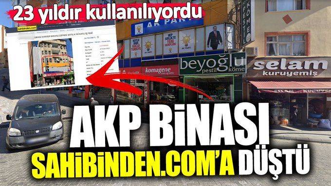 İlanda mal sahibinin AKP’nin 23 yıldır kullandığı bina için 14 milyon 750 bin lira istediği görüldü.
