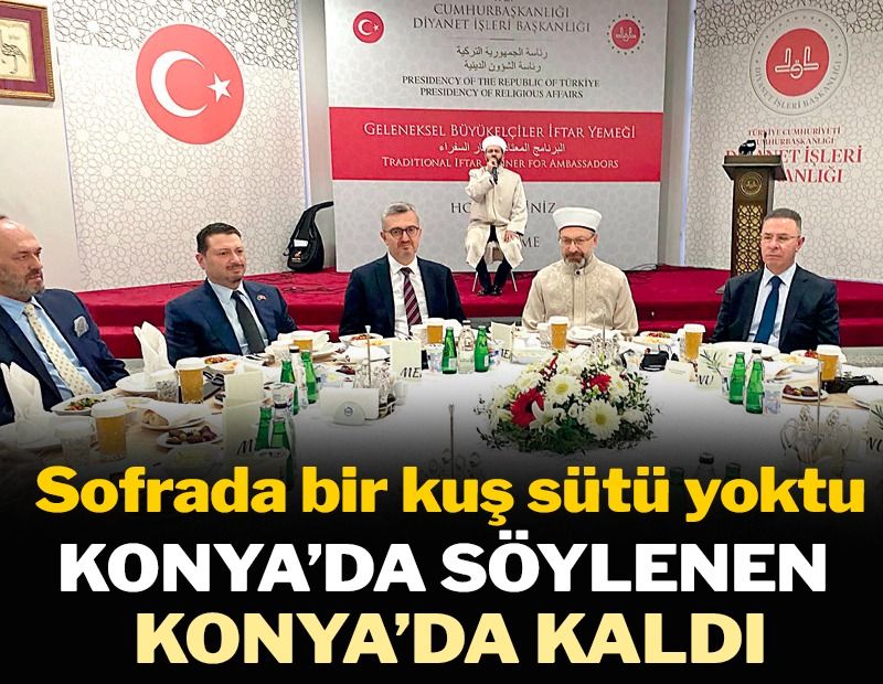 Konya'da Selçuk Üniversitesi Kampüs Camisi’de Diyanet İşleri Başkanı Ali Erbaş, hutbe okudu ve burada tasarruf mesajı verdi. Erbaş, “Lüks ve israfın sergilendiği, ihtiyaç sahiplerinin unutulduğu iftar sofraları kurmayalım” dedi. Ankara’ya dönünce başkanlıkta İslam Ülkeleri Büyükelçileri İftar Programı düzenlendi. Erbaş, ramazanda 180 lira ile iki öğün doyulabileceğini açıklamıştı. Ardından Diyanet büyükelçiler lüks bir sofra hazırladı.