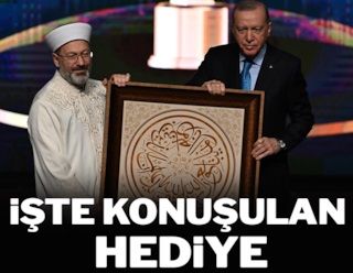 Ali Erbaş’ın bu hediye ile Erdoğan’a bir mesaj vermek istediği öne sürüldü. Sözcü’nün haberine göre, Ankara kulislerinde süresinin dolacağı eylül ayından önce görevden alınabileceği konuşulan Erbaş’ın, ‘çok özel hediyeyi’ bu ihtimali ortadan kaldırmak için seçtiği öne sürüldü.
