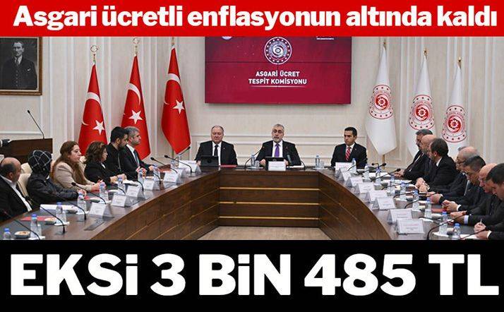 Çalışma ve Sosyal Güvenlik Bakanı Vedat Işıkhan’a gazeteciler TBMM’de “Asgari ücrete ara zam olacak mı?” diye sordu. Bakan Işıkhan, “Defalarca ifade ettiğim gibi herhangi bir artış olmayacak” yanıtını verip zam için 2025’in Ocak ayını işaret etti. 10 bin liralık en düşük emekli aylığında da artış yapılmayacağı daha önce açıklanmıştı. Asgari ücrete zam yapılmaması, asgari ücretin bir miktar üzerinde maaş alanlar başta olmak üzere sendikası olmayan tüm özel sektör çalışanlarını da vuracak. Asgari ücretin alım gücü zamsız geçirilen 6 ayın sonunda 3 bin 487 lira kayıpla 13 bin 515 liraya düşerken yıl sonunda bu gelir Merkez Bankası’nın enflasyon tahminlerine göre 12 bin 320 liraya, piyasa beklentilerine göre ise 11 bin 973 liraya kadar düşecek.