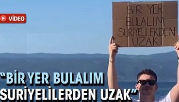 Bir gencin sahilde "Bir yer bulalım Suriyelilerden uzak" yazılı pankartla poz verdiği video gündem oldu