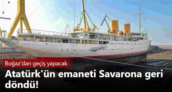 Gazi Mustafa Kemal Atatürk'ün manevi mirası Savarona, Cumhuriyet'in kuruluşunun simgesi TCG Anadolu ve 7 diğer gemiyle birlikte, 24 Ağustos tarihinde İstanbul Boğazı’nı selamlayacak. İstanbul Tersanesi Komutanı Tümamiral Recep Erdinç Yetkin, geçişin 13.30'da Sarıyer'den başlayacağını duyurdu.