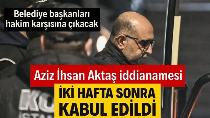 İddianamede Aziz İhsan Aktaş'ın; 9 farlı suçtan toplamda 704 yıla kadar hapsi talep edilirken, görevlerinden uzaklaştırılan Beşiktaş Belediye Başkanı Rıza Akpolat'ın 415 yıla kadar, Avcılar Belediye Başkanı Utku Caner Çaykara'ya 18 yıla kadar, Esenyurt Belediye Başkanı Ahmet Özer'in 9 yıla kadar hapsi istendi. Ayrıca görevlerinden uzaklaştırılan Adana Büyükşehir Belediye Başkanı şüpheli Zeydan Karalar, Adıyaman Büyükşehir Belediye Başkanı Abdurrahman Tutdere, Seyhan Belediye Başkanı Oya Tekin, Ceyhan Belediye Başkanı Kadir Ayda'nın da 12 yıla kadar hapsi talep edildi.