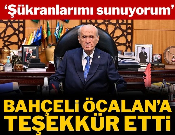 Bahçeli açıklamasında, "PKK’nın kurucu önderi Abdullah Öcalan’a, İmralıDEM PartiKandil arasında temas ve görüşme trafiğini yürüten heyetlere, DEM Parti’nin eş genel başkanlarına, yönetici ve milletvekillerine, Türk ve Kürt kardeşliğine sahip çıkan her vatan evladına, elbette Türk Silahlı Kuvvetleri’nin komuta kademesiyle hiyerarşik zincir içindeki tüm kahramanlarımıza teşekkür ediyor şükranlarımı sunuyorum" ifadelerini kullandı.