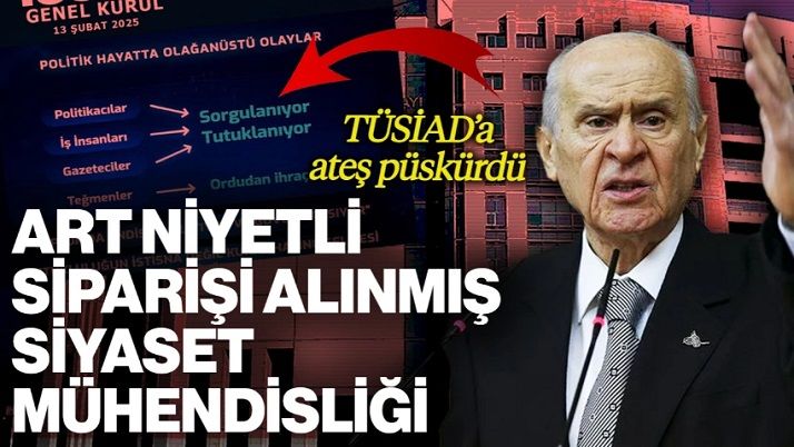Açıklamasında TÜSİAD’ın, hükümeti devirme değilse bile yıpratma ve muhalefete ön açma operasyonunun çatı kuruluşu haline geldiğini öne süren MHP lideri, "TÜSİAD muhalefet cenahını konsolide etme arayışındadır. O halde CHP’nin bir yandan tavşan adayları gündemde tutarken diğer tarafta yedek kulübesinde beklettiği TÜSİAD Başkanı’nı Cumhurbaşkanı adayı olarak tespit ve değerlendirmesi siyasi ve ideolojik ahlaklarıyla tutarlılık gösterecektir. Hiç kimse boşa sallayıp dolu tutmanın çabasında olmamalıdır. Üstelik sorunları tarif ederek bununla mündemiç sözde çözümleri paylaşan TÜSİAD yöneticilerinin ezberleri tekrarlamaktan öte sunumları inandırıcı ve ikna edici bir muhtevadan tamamen yoksundur. Saman altından su yürütme dönemi kapanmıştır" ifadelerine yer verdi.