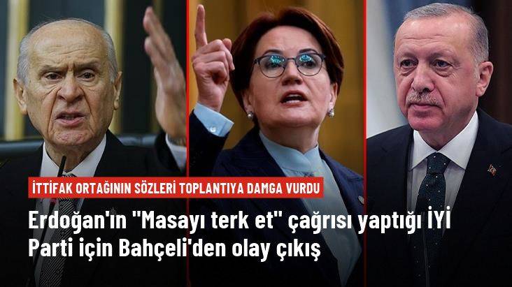 MHP Genel Başkanı Bahçeli, geçtiğimiz günlerde Cumhurbaşkanı Erdoğan'a "6 kişilik masayı terk edin" çağrısında bulunan İYİ Parti için dikkat çekici açıklamalarda bulundu.