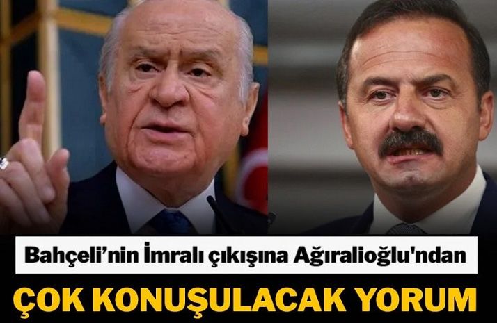 MHP lideri Bahçeli'nin "Komisyon İmralı'ya gitmezse, alırım yanıma 3 arkadaşımı kendi imkanlarımla İmralı'ya gitmekten imtina etmem" çıkışı büyük yankı uyandırdı. Bahçeli'nin sözlerine en çarpıcı yorum ise Anahtar Parti Genel Başkanı Yavuz Ağıralioğlu'ndan geldi.