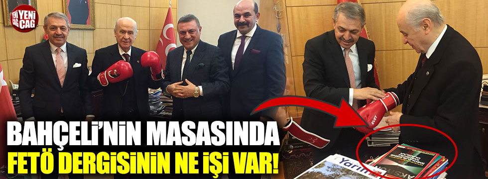 Bahçeli'nin masasında FETÖ'nün haftalık olarak yayınlanan Aksiyon dergisi bulunduğu görüldü.