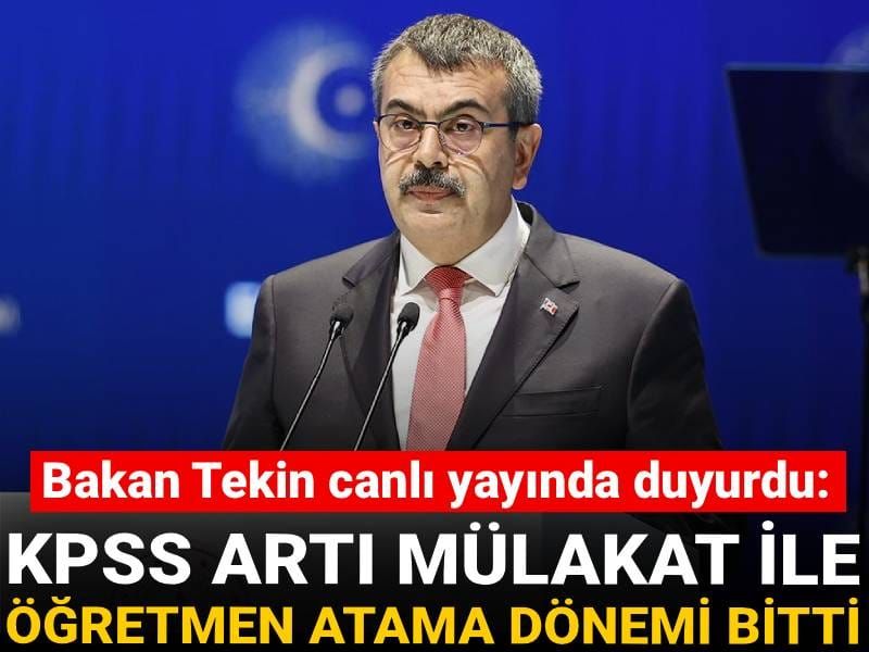 Milli Eğitim Bakanı Yusuf Tekin katıldığı TV yayınında öğretmen atamalarına, okullardaki temizlik probleminden kaynak sorunları hakkında dikkat çeken açıklamalarda bulundu. Tekin yaptığı açıklamada KPSS artı mülakat ile atama döneminin sona erdiğini, son atamalardaki itiraz sürecinin de sona ermesi ile yeni sisteme geçileceğini açıkladı.