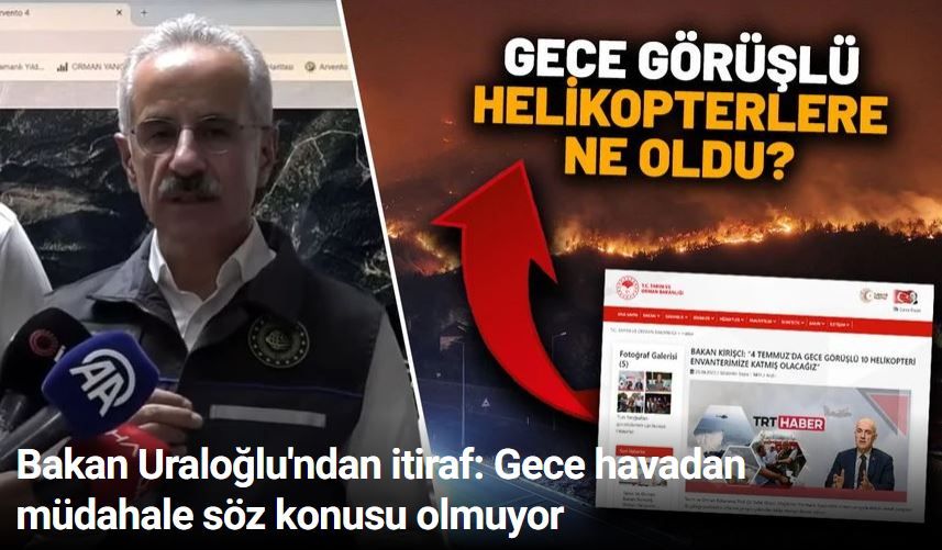Uraloğlu’nun yangınlara havadan müdahale ile ilgili yaptığı açıklama ise kafaları karıştırdı. Gece havadan müdahalenin mümkün olmadığını söyleyen Uraloğlu, helikopter ve uçakların gündüz saatlerinde görev yapabileceğini belirtti.