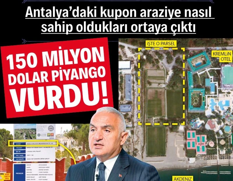 Kültür ve Turizm Bakanı Mehmet Nuri Ersoy’un skandalları bitmiyor. Kartalkaya faciasından sonra istifa etmeyen ve lüks yatıyla Yunanistan’da turlayan Kültür ve Turizm Bakanı Mehmet Nuri Ersoy’un şirketi Nebula Otelcilik’in, Antalya’nın Kundu turizm bölgesinde orman vasfındaki hazine arazisine ihalesiz şekilde otel inşaatı yaptırdığı ortaya çıktı. Söz konusu arazinin 150 milyon dolar (6 Milyar TL) ettiği belirtildi.