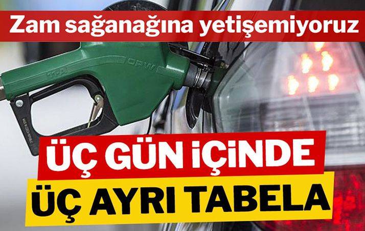Benzin fiyatlarına art arda gelen zamlarla akaryakıt istasyonalrında 3 günde 3 ayrı tabela oluştu.