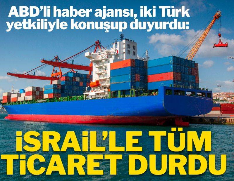 Bloomberg'e konuşan iki Türk yetkiliye göre, Türkiye İsrail'e ihracatı ve İsrail'den tüm ithalatı durdurdu.