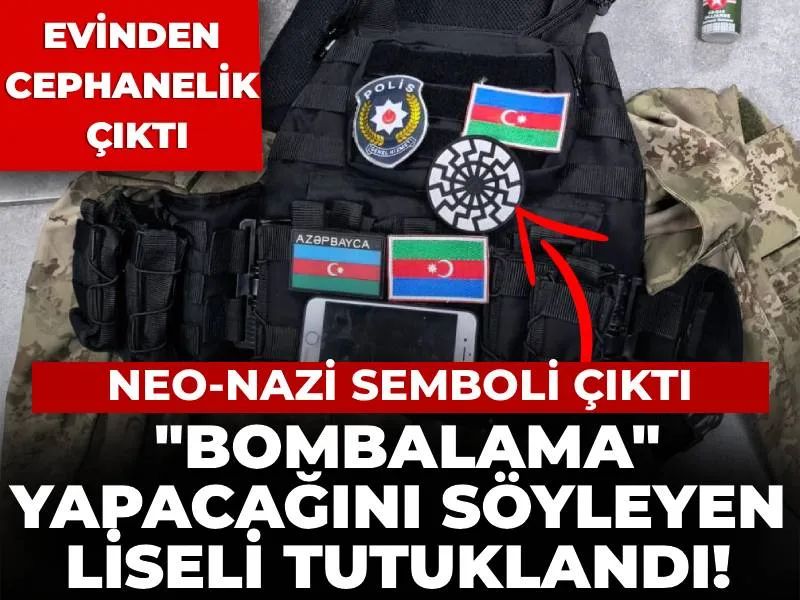 Telegram’dan Kahramanmaraş’taki saldırıyla alakalı bomba fotoğrafı ve bombalama yapacağına yönelik mesajlar atan lise öğrencisi tutuklandı. Liselinin evinden cephanelik çıktı. Liseliye ait kamuflajda Eskişehir saldırganının da kullandığı 'Kara güneş' isimli Neo-Nazi sembolü görüldü.