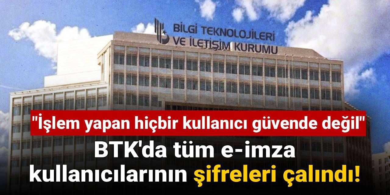 "BTK’da ülke genelinde tüm eimza kullanıcılarının şifrelerinin saklandığı veri havuzu patlatıldı.