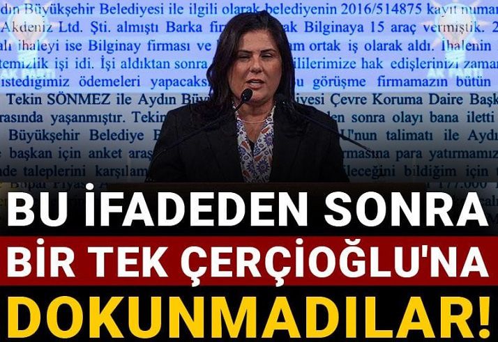 Savcılık bu ifadede adı geçen tüm kişiler hakkında işlem yaptı; ancak aynı beyanlarda ismi geçen Aydın Büyükşehir Belediye Başkanı Özlem Çerçioğlu hakkında hiçbir adım atılmadı.