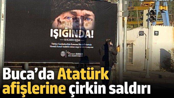10 Kasım'da hem Mustafa Kemal Atatürk'ü anmak hem de ona duyulan derin özlemi ifade etmek amacıyla Buca Belediyesi tarafından kentin caddelerine yerleştirilen billboardlara, kimliği belirsiz kişiler tarafından çirkin ifadeler yazıldı.
